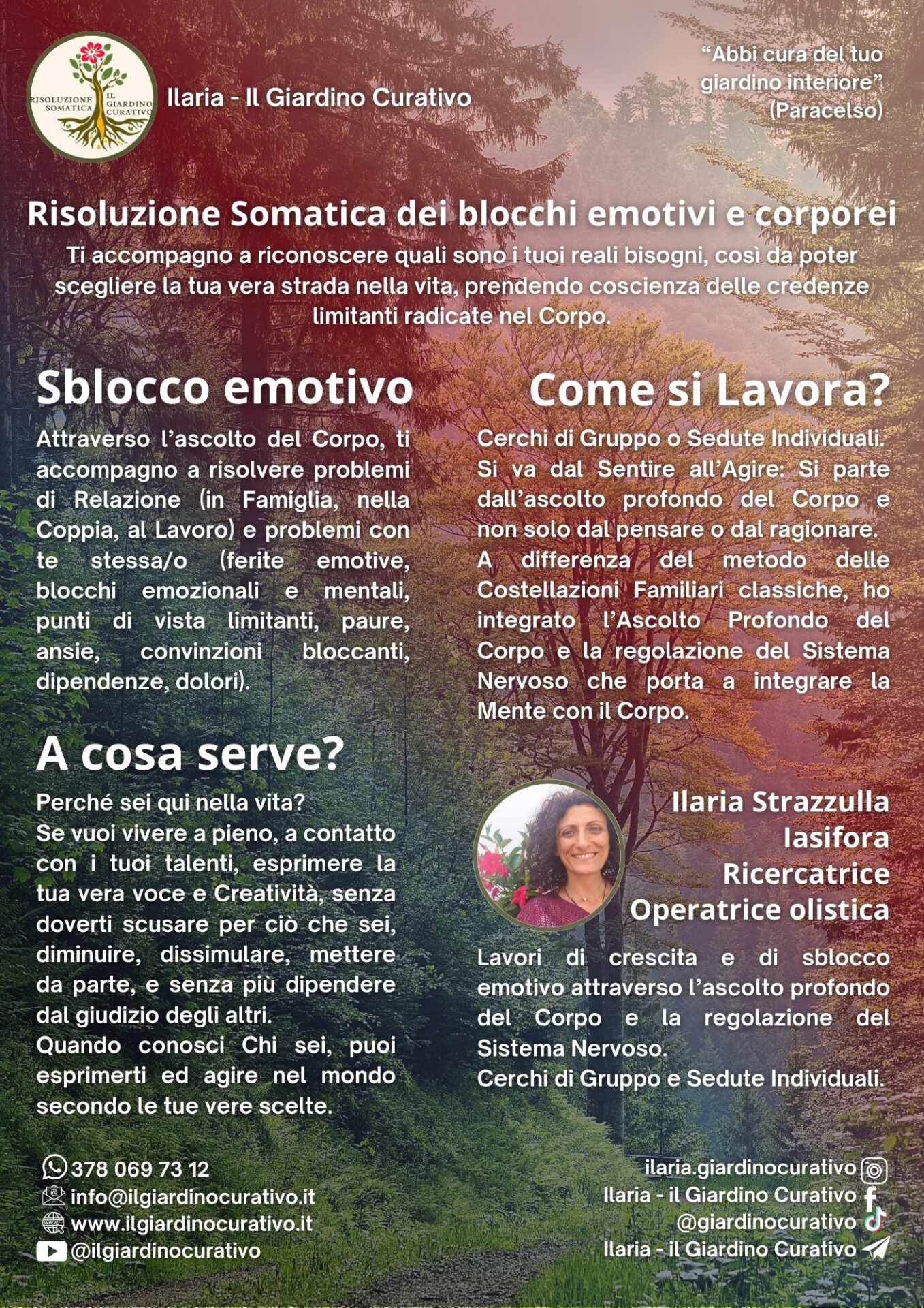 Questo Lavoro di Consapevolezza favorisce la crescita e lo sblocco emotivo, attraverso l’ascolto profondo del Corpo e la regolazione del Sistema Nervoso, la Comunicazione empatica, le Costellazioni Sistemiche a rilascio somatico, il Sound Healing e il Metodo Funzionale. 🎯